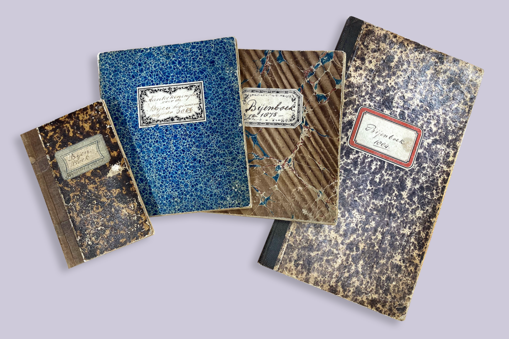 De vier 'bijenboeken' waarin Gerhard Joan Kronenberg van 1854 tot 1906 zijn observaties bijhield.